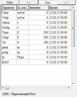 Теплосчетчик передает архивные посуточные данные о значения расхода.