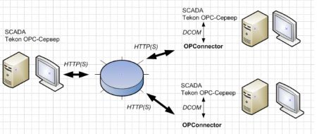 Фактически сигналы удаленных Текон ОРС-серверов проецируются в адресное пространство локального ОРС-сервера на стороне SCADA