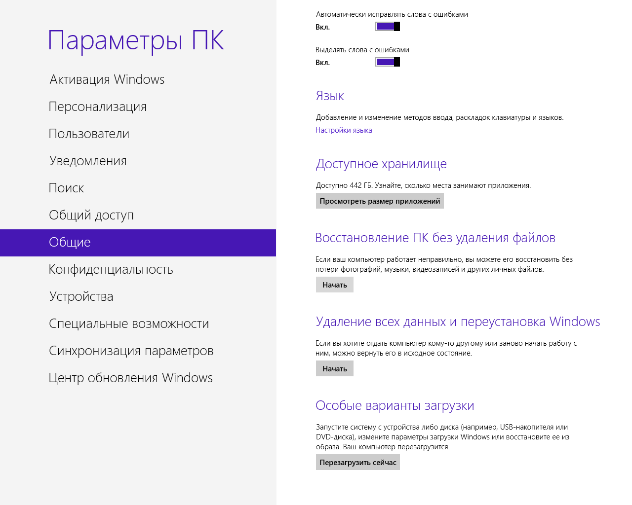 Пункт системы "Параметры ПК"