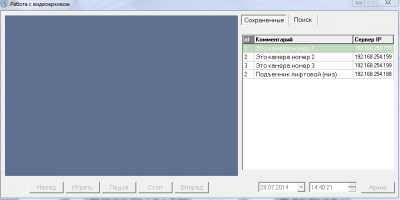 После подключения к камере можно перейти в режим просмотра архива, указав требую дату архивной записи и нажав Архив.