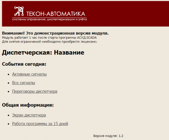 WEb-модуль работает в течение 1 часа после запуска АСУД.SCADA без ограничений. Для полноценной работы модуля требуется приобретение лицензии.