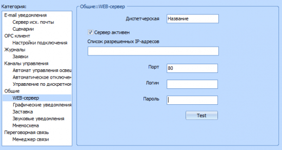 - Диспетчерская - наименование объекта, которое будет отображаться на web-странице
