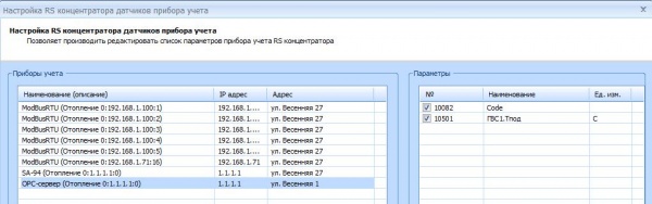Выполнить настройку Прибора учета, выполнив двойной клик и выбрав концентратор 911 и установив флажки напротив всех параметров.